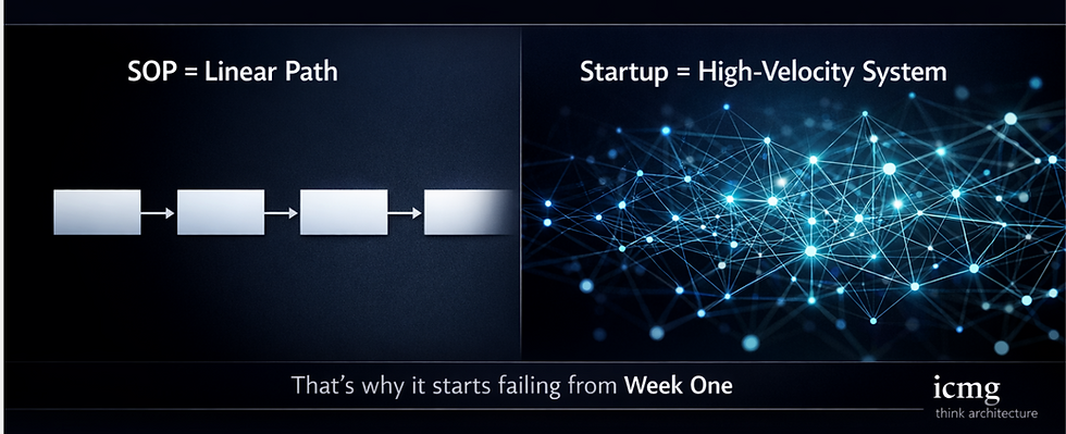 The SOP captures a procedural slice of the startup at one point in time. The startup, however, is not a static procedure. It is a continuously evolving execution system under uncertainty.